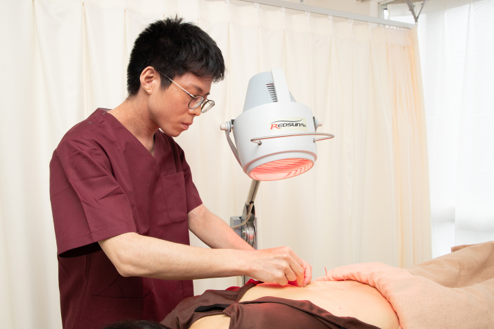 鍼をしながら、遠赤外線を加えると気持ちよく、自律神経が安定しリラックス効果があります。