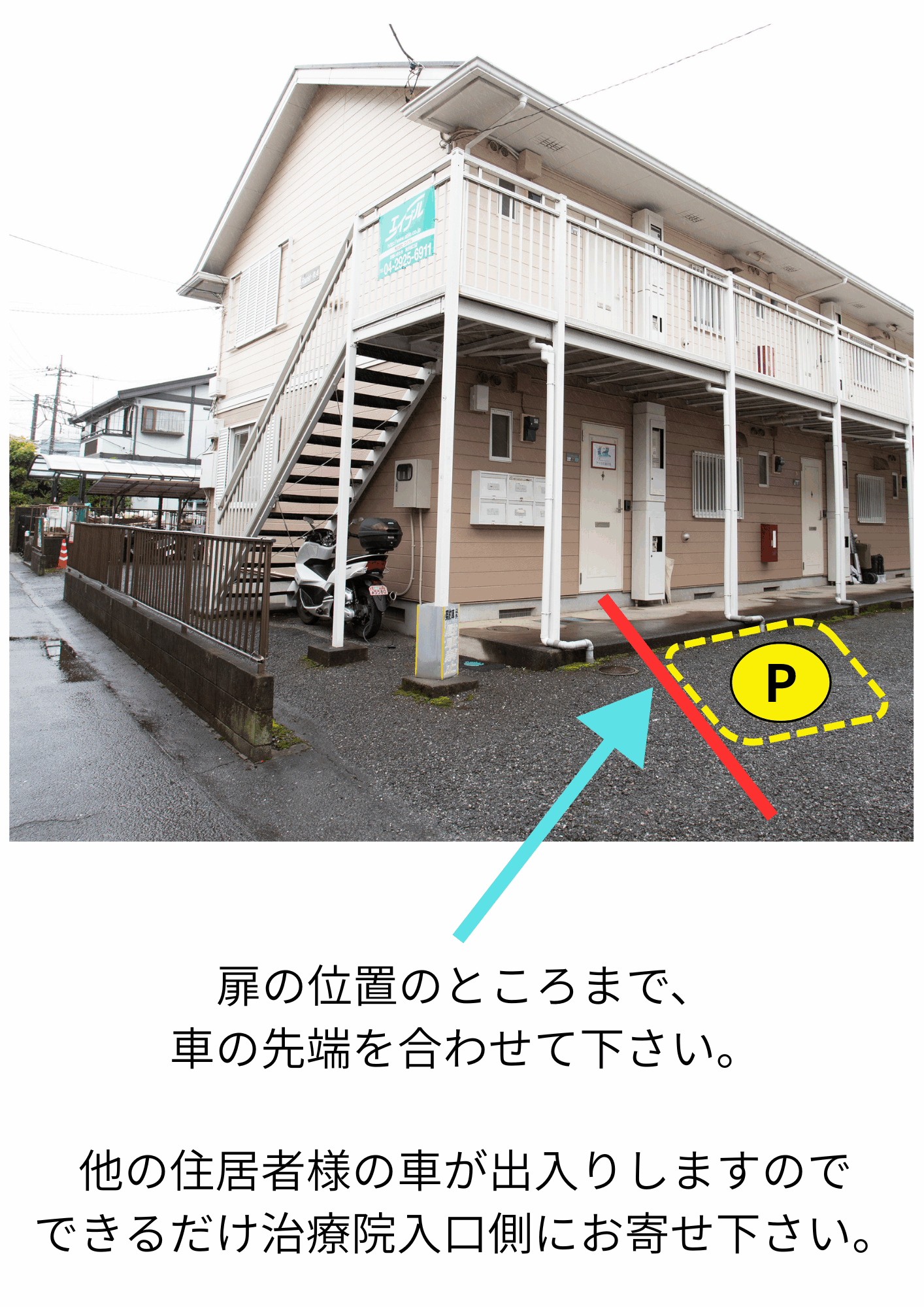 ※手前に同じようなアパート(黄色い線)が並んでいますが、当院は奥側にあります。